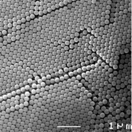 粒径の揃った微粒子を堆積させる方法がもっとも簡単です。素材としては、シリカ、アクリル(PMMA)、そしてポリスチレン(PS)などがあります。